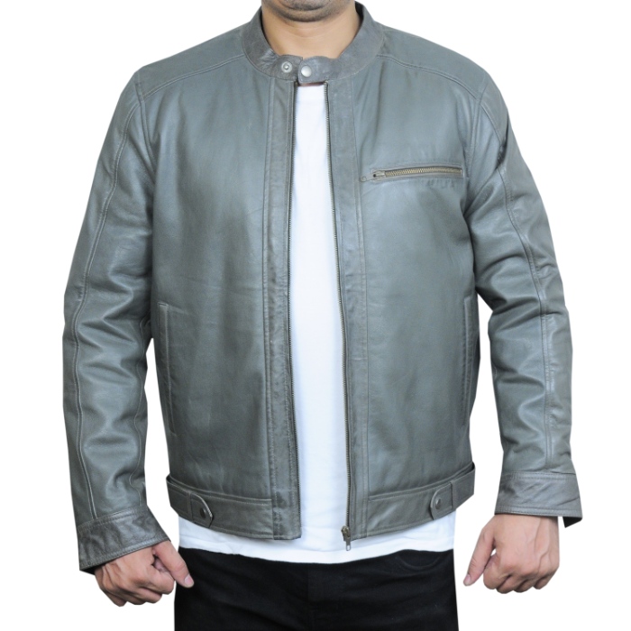 Home Men Men Leather Jackets Jackson Grey Leather Biker Jacket
